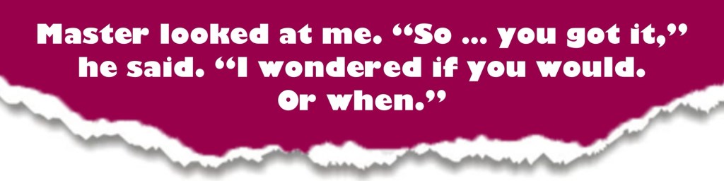 Master looked at me. “So … you got it,” he said. “I wondered if you would. Or when.”