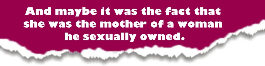 And maybe, in a more minor way, it was the fact that she was the mother of a woman he sexually owned.